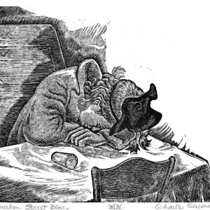 Charles made a few prints from each block, but he held a certain fear about the Federal Government. Cindy saw that fear come into play as Charlie’s alcoholism increased. During the Martin Luther King riots, he called the White House and offered to paint the president’s dwelling black. Three FBI agents appeared on his front door the following morning. Charlie’s colorful life continued to his death in 1979.
