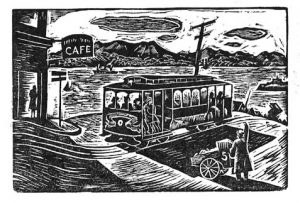 In 1968, Cindy was living with her father in Columbia, California. A very old woman drove up to their home asking for Charles. The three of them sat in the living room, and she pulled out three wood blocks from her purse. She began to explain: “I worked for the federal government during the WPA era. I was in charge of distribution of the art and to make sure that everything was done correctly.” The woman began to tear up. “I am sorry, Mr. Surendorf, that I had to destroy your blocks. I put these in my lunch bag and vowed before I died I would return them to you.”